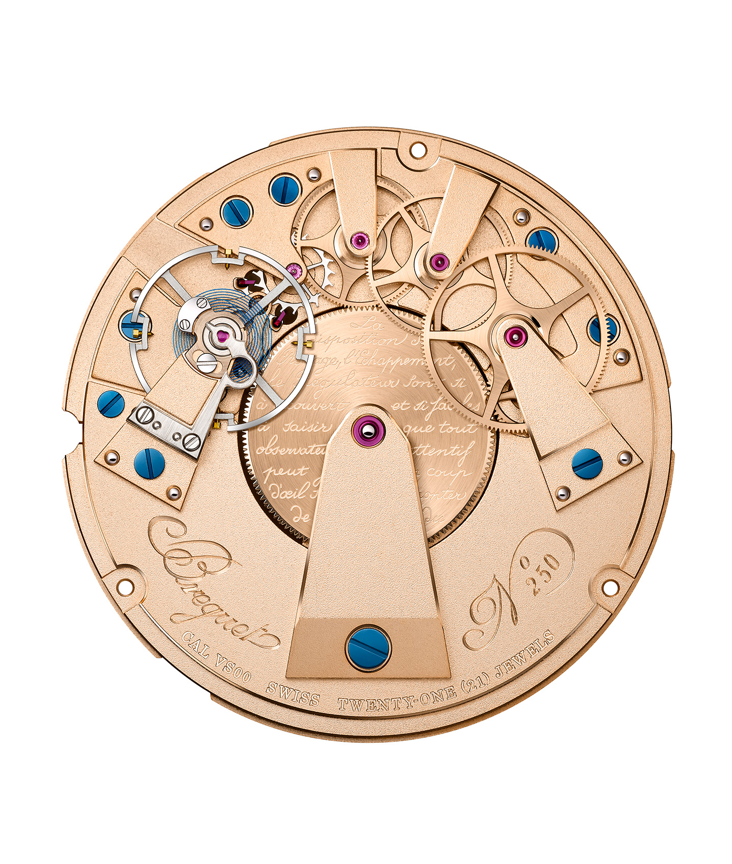 Usan dos coronas, una para el sistema de carga y otra para el ajuste de la hora, integran increíblemente bien el tren de engranajes junto con un barrilete XL, para una mayor eficiencia y duración de la carga; y, por supuesto, ejecutan de una forma excelente la jaula de su tourbillon. Todo esto con solamente 15 joyas, es decir, consiguen un movimiento muy complejo en una ejecución simple. Eso sí que no es sencillo. Jean-Claude Babin, director de relojes en LVMH, es uno de los únicos CEOs en ganar premios en el GPHG con diferentes marcas (en su caso, TAG Heuer y HUBLOT).