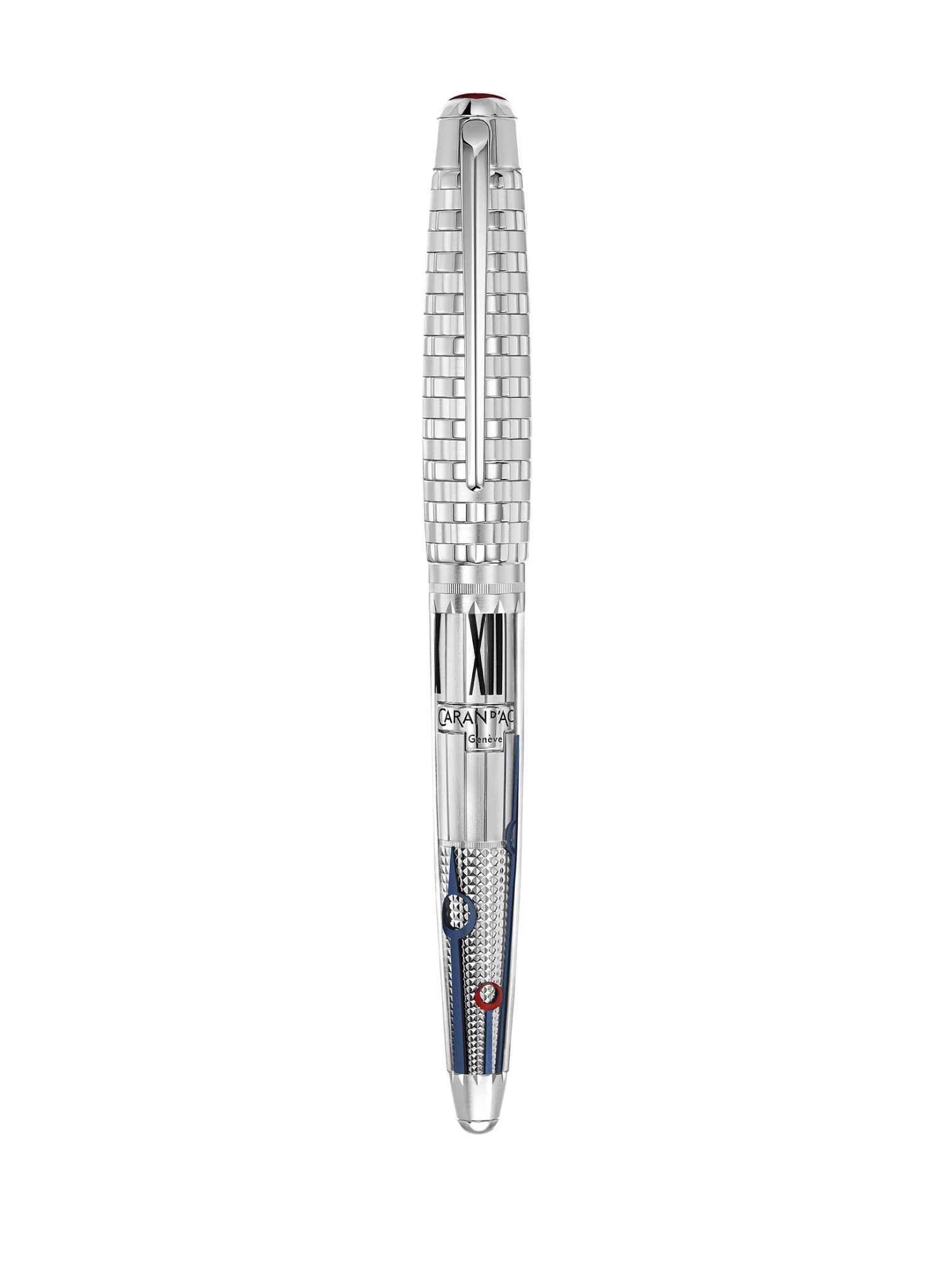 El Caran d’Ache 1010 Timekeeper es un roller concebido como una pequeña celebración de esa posición mágica de las agujas cuando el reloj marca las 10:10. Es el gran bolígrafo para amantes de los relojes. Su cuerpo chapado en plata y protegido por el brillo frío del rodio refleja la luz como un objeto nacido para ser usado pero también contemplado de cerca. Cada centímetro de esta pieza hecha a mano está trabajado con cuidado: el grabado minucioso, el lacado profundo, las texturas que recuerdan a los engranajes que dan la vida a un reloj.