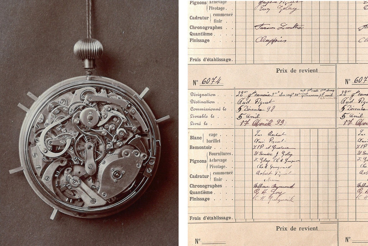 Recordemos que la marca era básicamente un «etablissage», una organización del trabajo protoindustrial por la que las tareas se repartían entre varios relojeros, cada uno de ellos especialista en su campo. Con todo, en el «etablissage» había aun una categoría de operarios a un nivel superior: los «repasseurs», encargados de ajustar todas las piezas de distinta procedencia para que funcionaran como el todo para el que habían sido concebidas. Fue así como en 1899 Audemars Piguet & Cie presentó el calibre pluricomplicado L’Universelle, encargado a Louis Elisee Piguet -calibre 6074- y terminado (‘repasado’) en sus propios talleres. Louis Elisée no era pariente directo del socio de la marca, como tampoco lo eran los otros relojeros con el mismo apellido que participaron en la construcción del 6074 (posteriormente rebautizado 6142 en los archivos de la Casa). Es más, la compañía compartía apellidos con hasta cuatro manufacturas más. En un valle tan relativamente pequeño y tan aislado como el Valleé de Joux era fácil que, más o menos lejanamente, todos estuvieran emparentados.